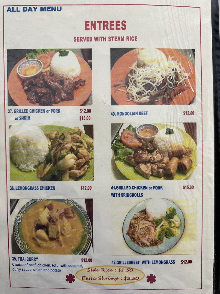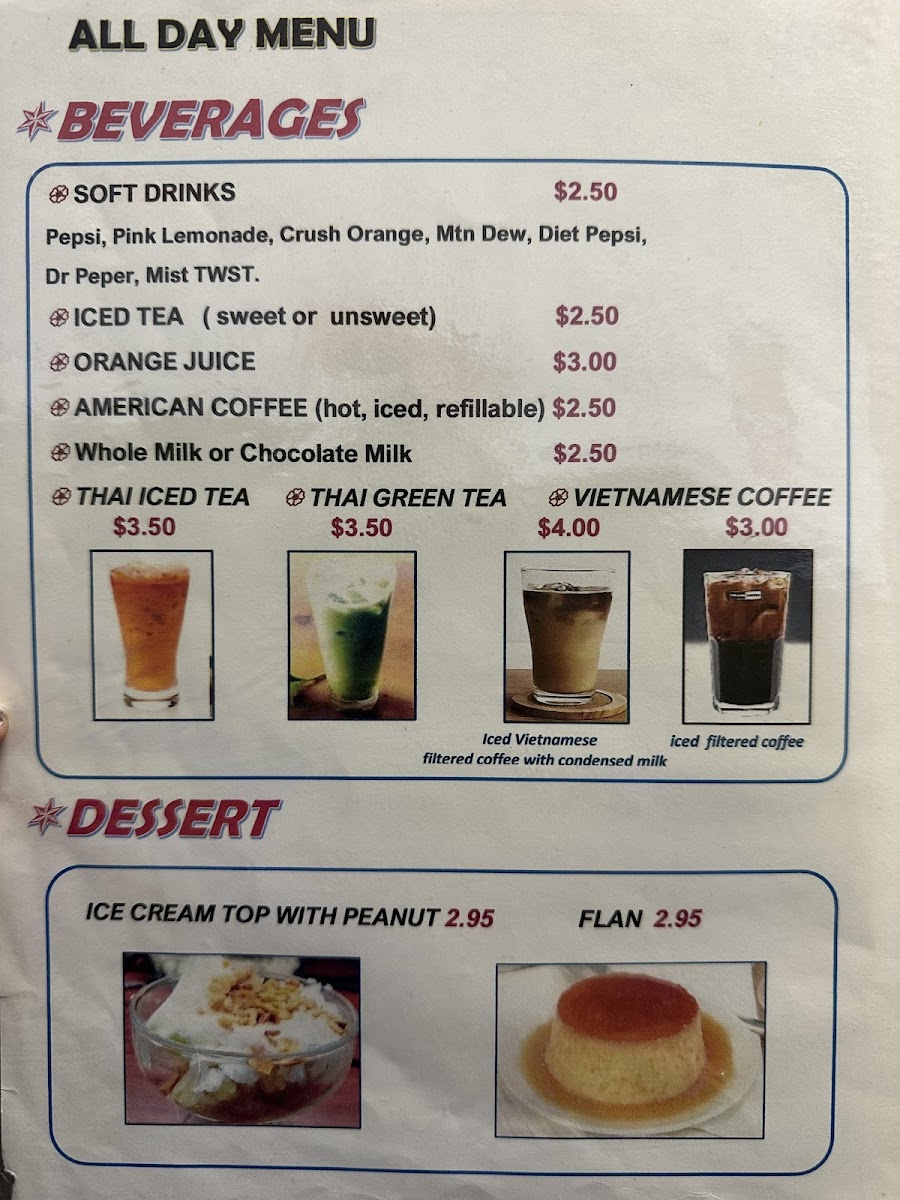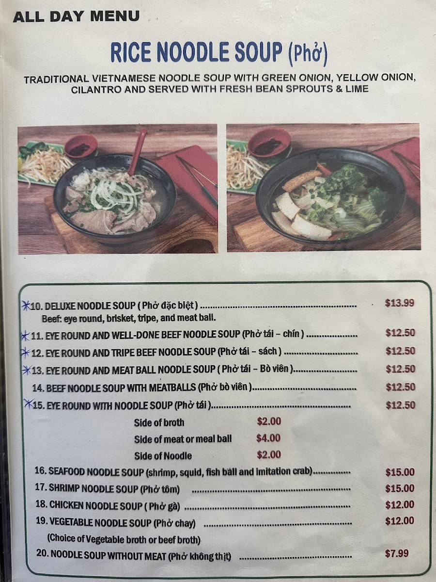 Mornings here often begin with items like buttermilk pancakes, coconut pancakes, or a rich Vietnamese coffee—perfect for easing into the day. For those looking for something more substantial, options such as the meatlover omelette or the tofu scramble on a wheat bagel provide a comforting, home-like start. Later in the day, dishes like chicken pad thai or sliced beef and brisket pho feel just right for a casual, satisfying lunch that’s rich with flavor and warmth.