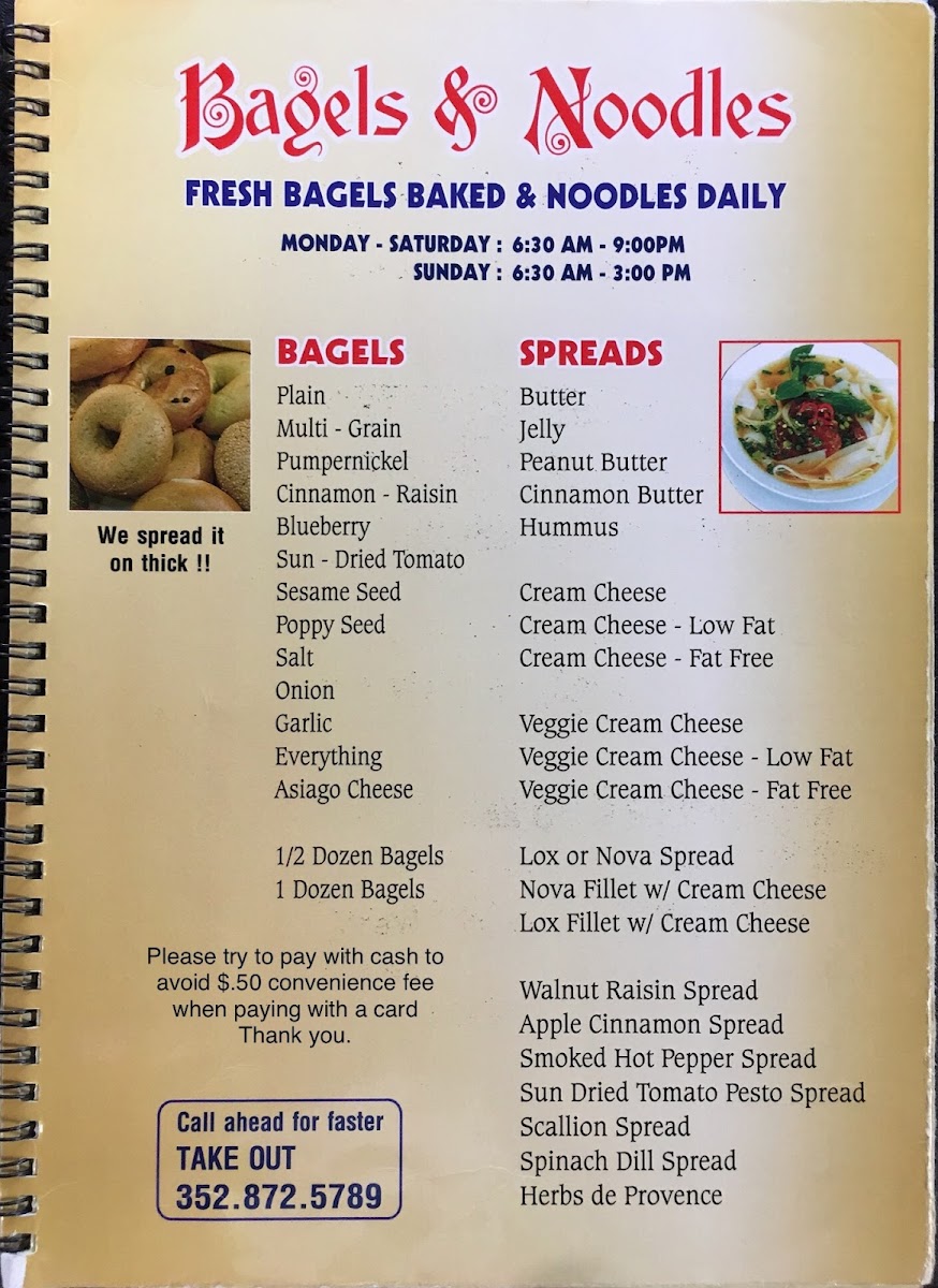 Bagels & Noodles Menu